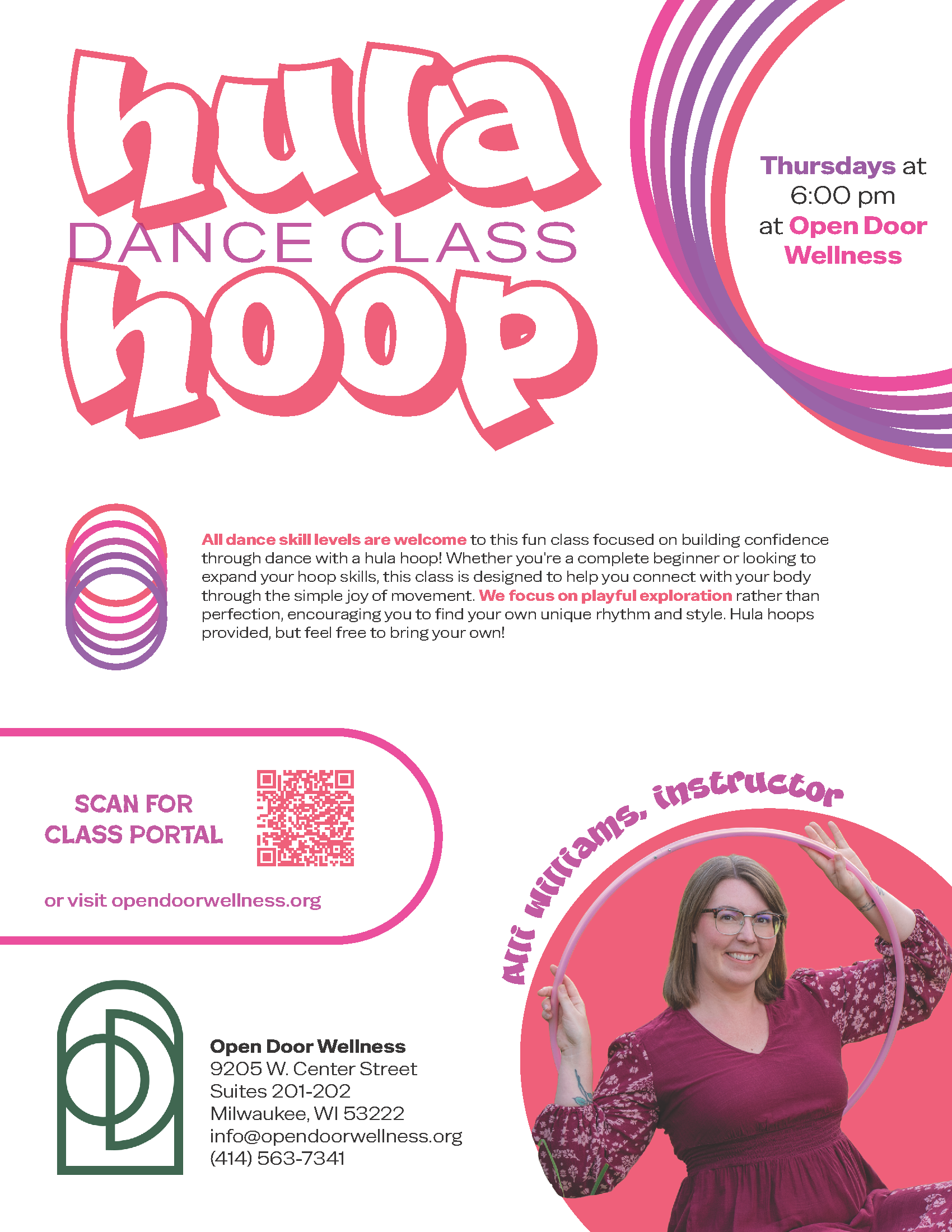 Please read our thorough class descriptions for more information about each class to help determine which might be the best fit for you. If you have further questions, you can contact us at info@opendoormovementstudio.com or (414) 563-7341.